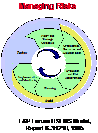 Post Piper Alpha it became a requirement for offshore facilities too. The E&P Forum (now the Oil and Gas Producer Association (OGP)) provided their “Guidelines to HSE Management Systems” in 1995. Companies will typically have a Corporate HSE Management System and then appropriate Operating Unit, Departmental and Site HSE Management Systems.